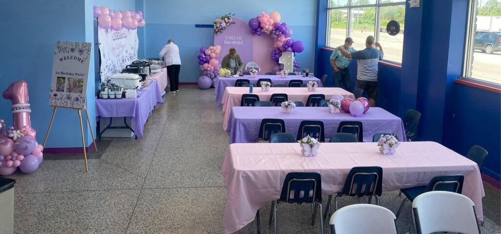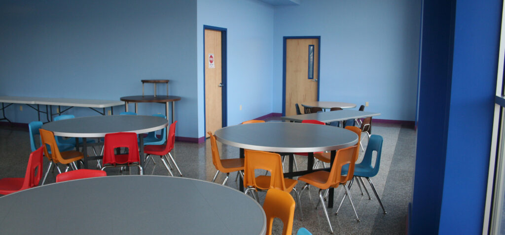 Big, roomy, and lots of windows. This is our largest room. Doesn’t have a sink. Seats around 49 adults, and 9 children.